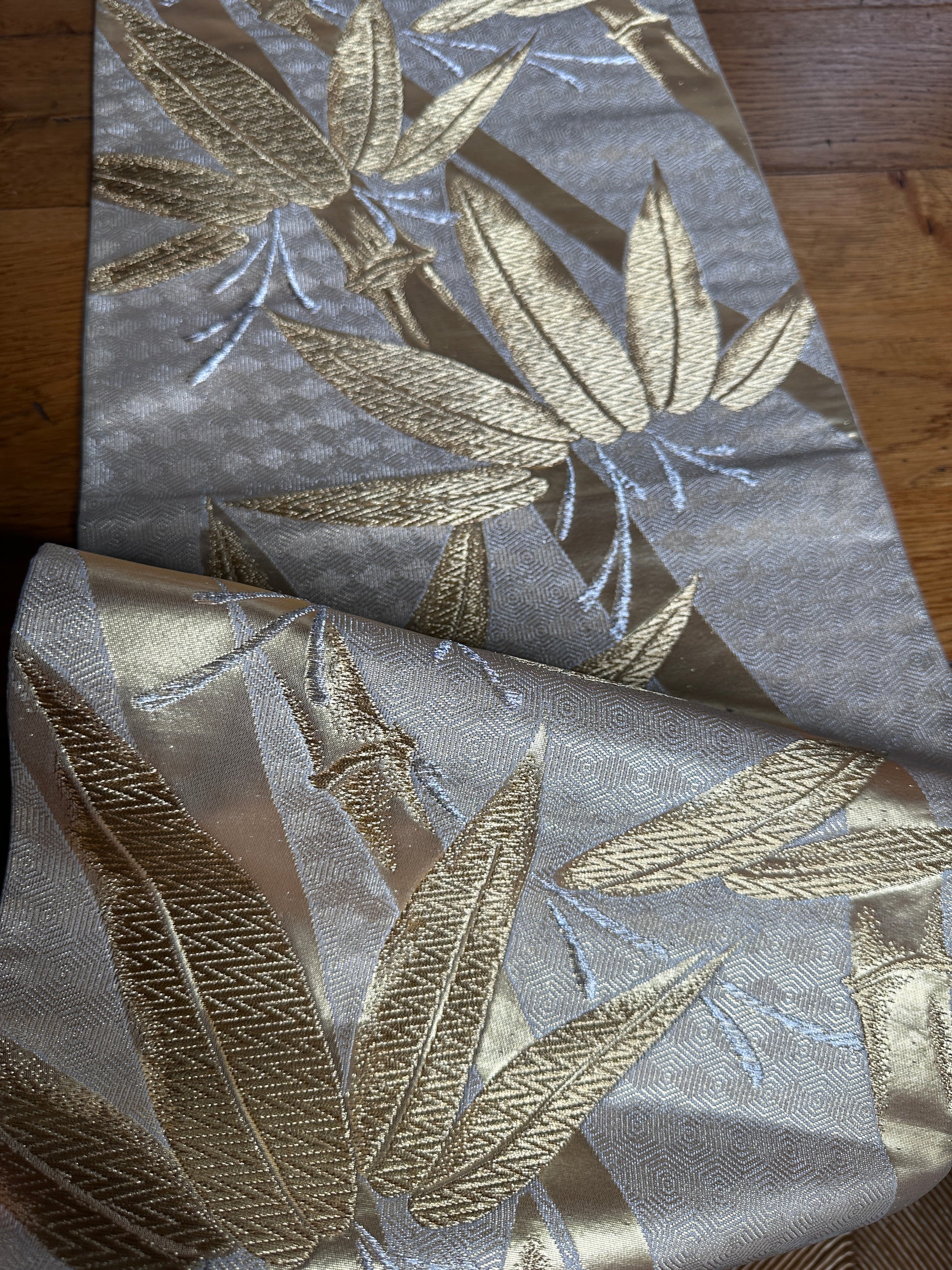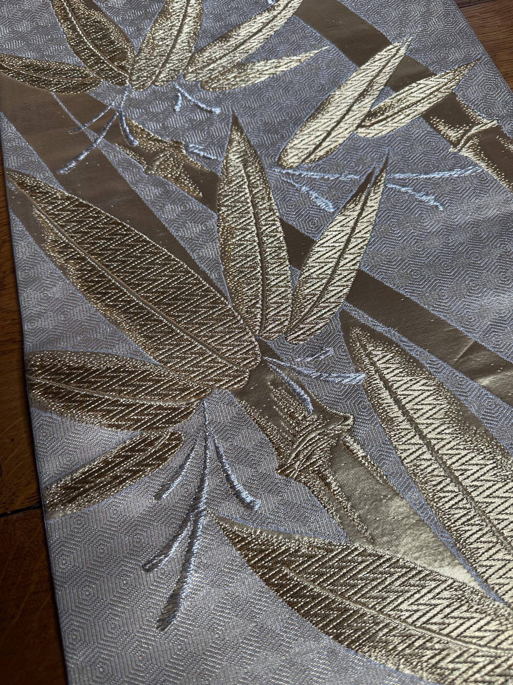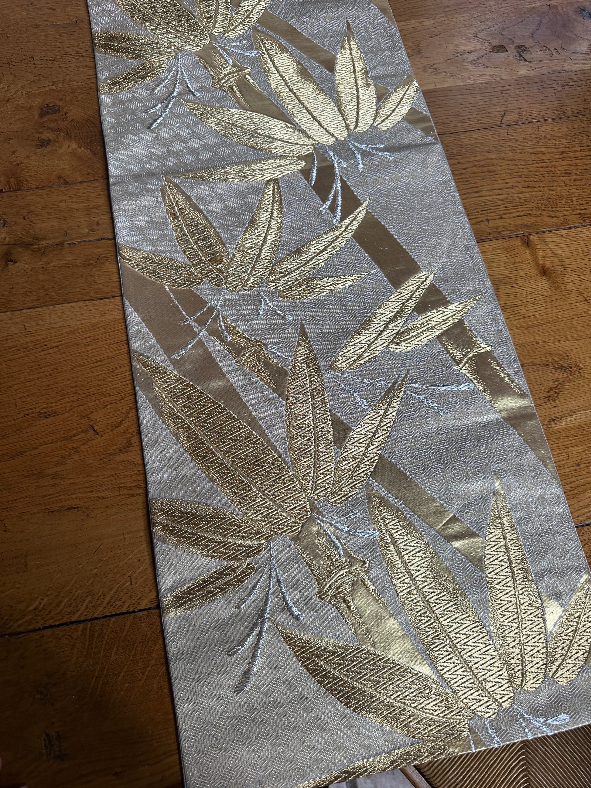 des bambous brodé en fil doré et argenté