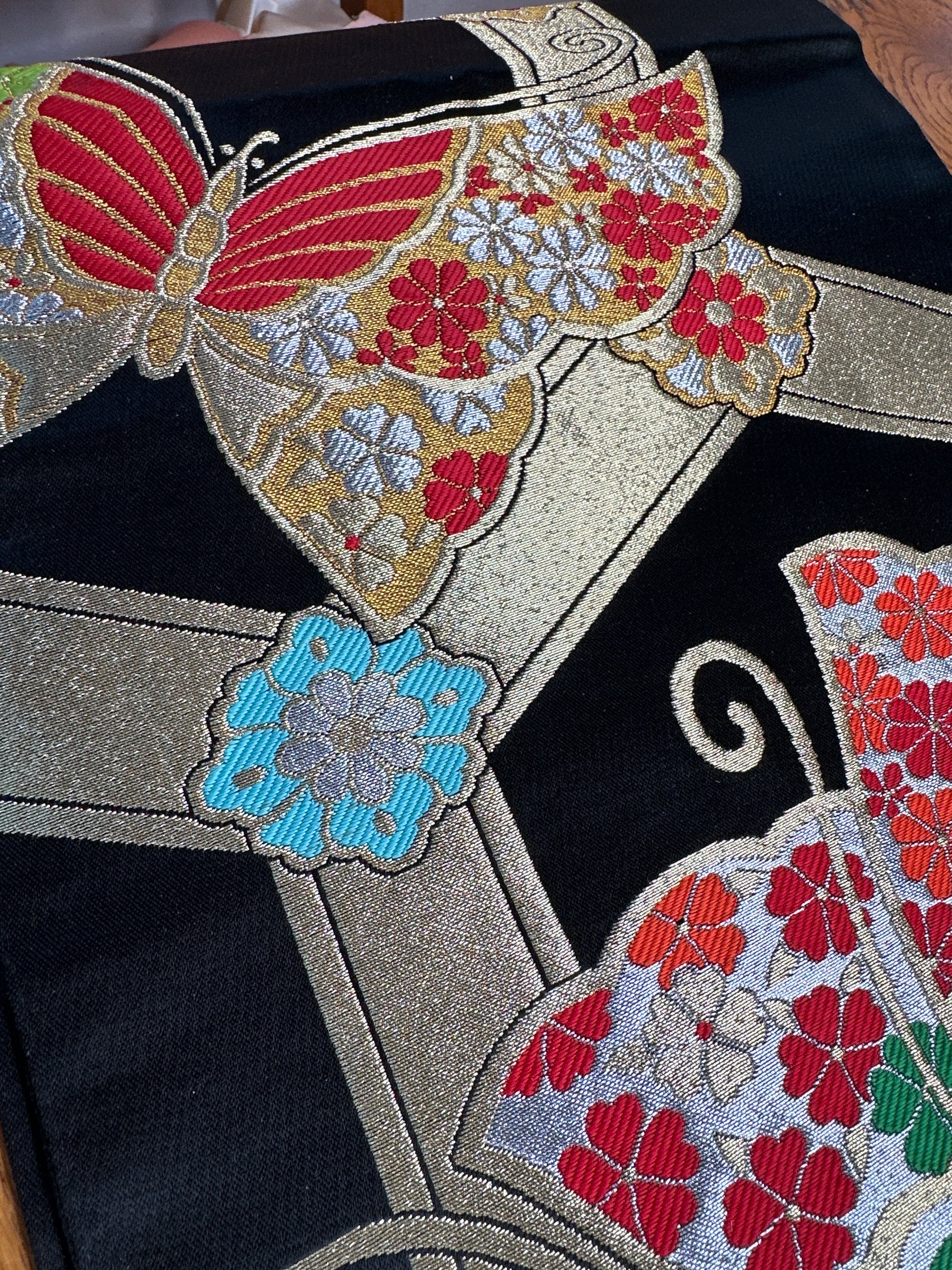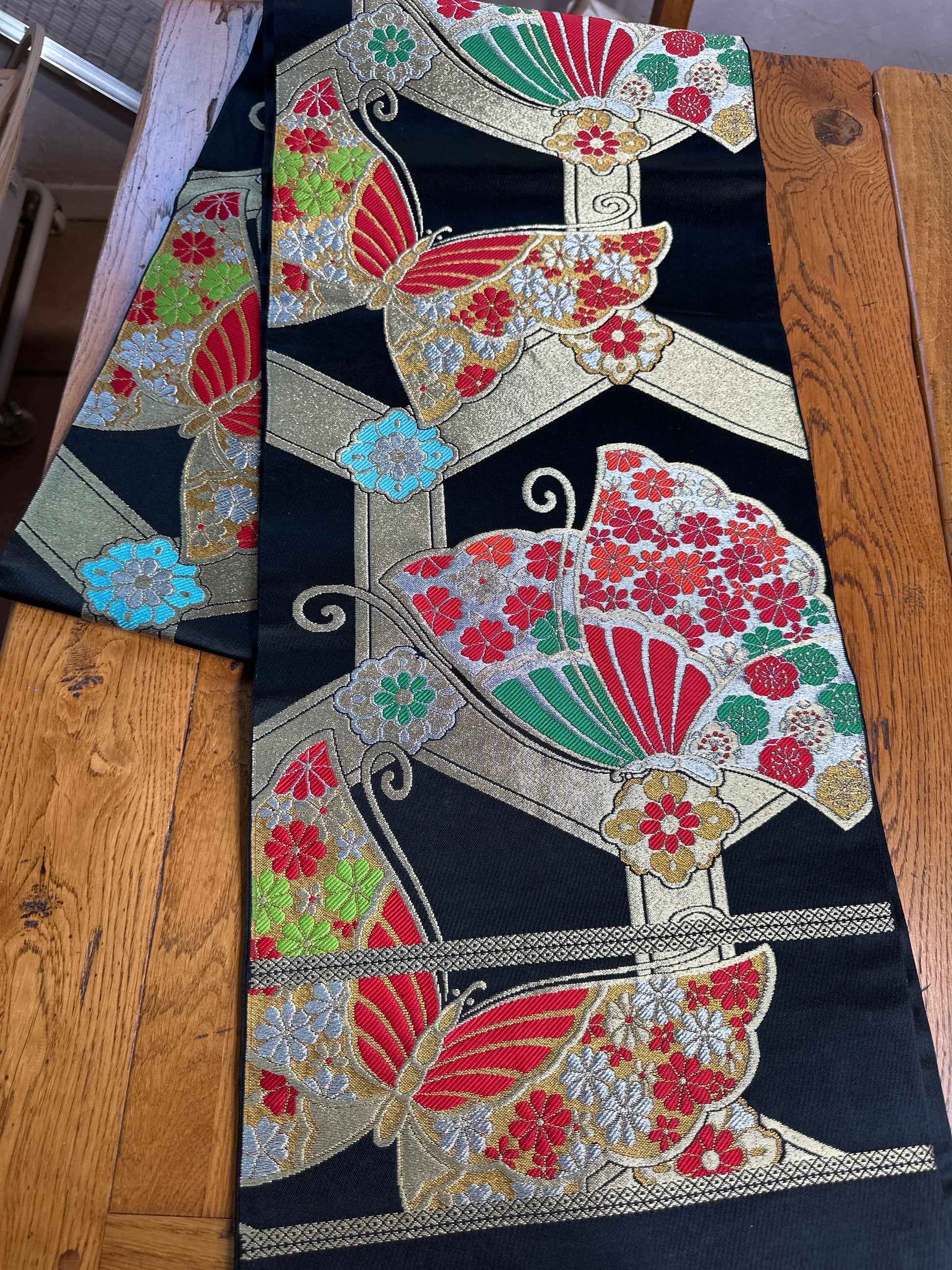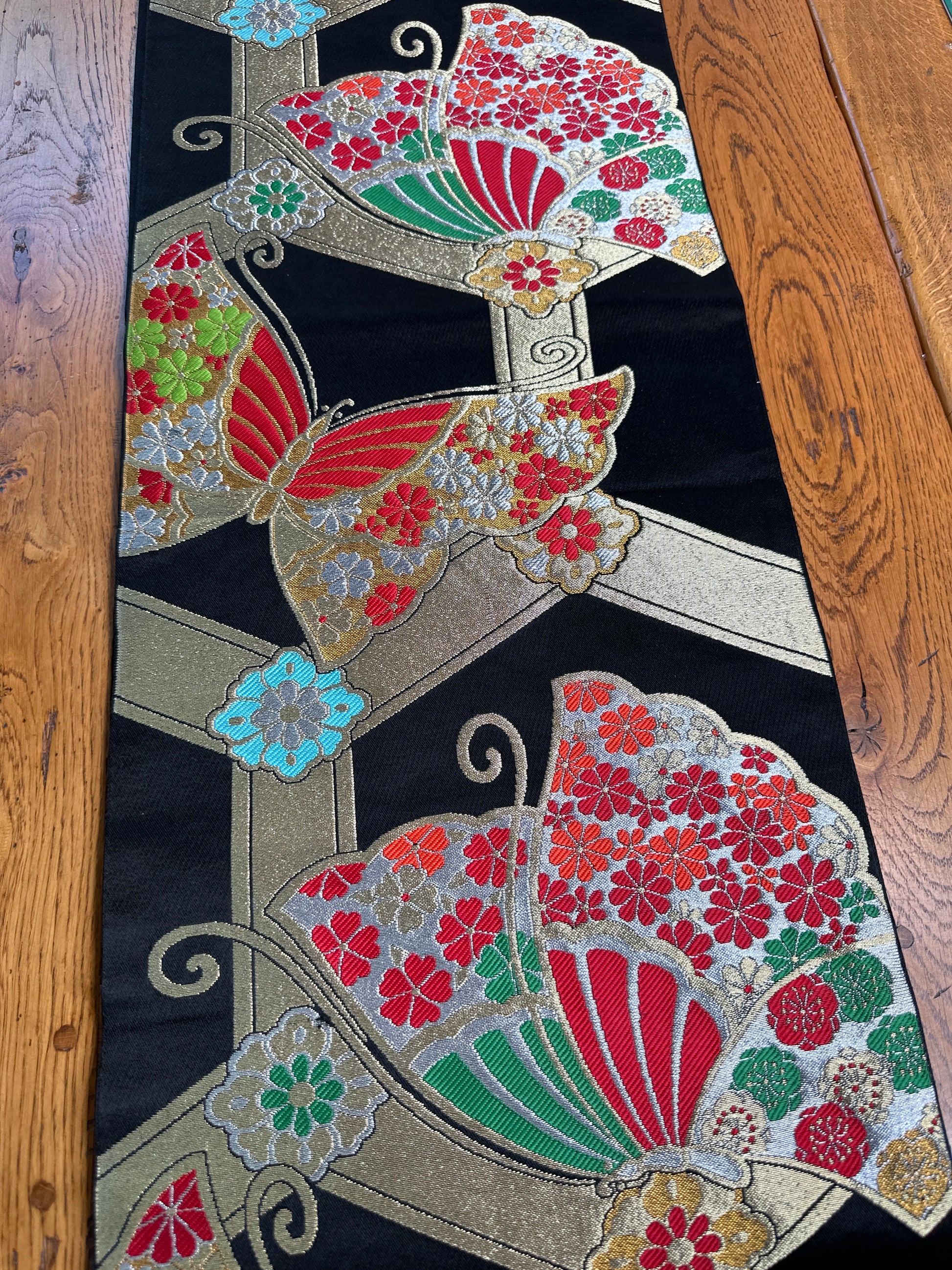 Obi japonais transformé en chemin de table