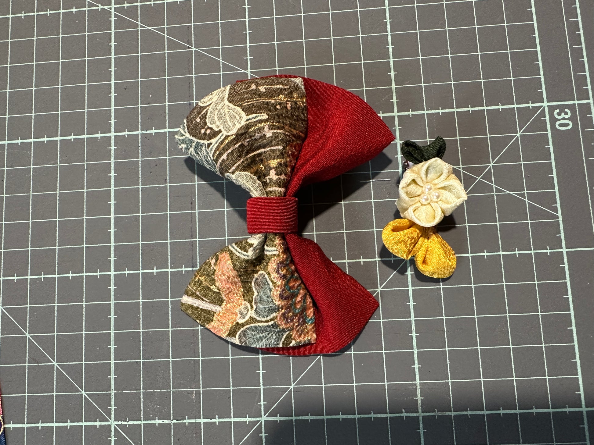 pince 4,5cm en noeud ruban réalisé avec tissu de kimono en soie également