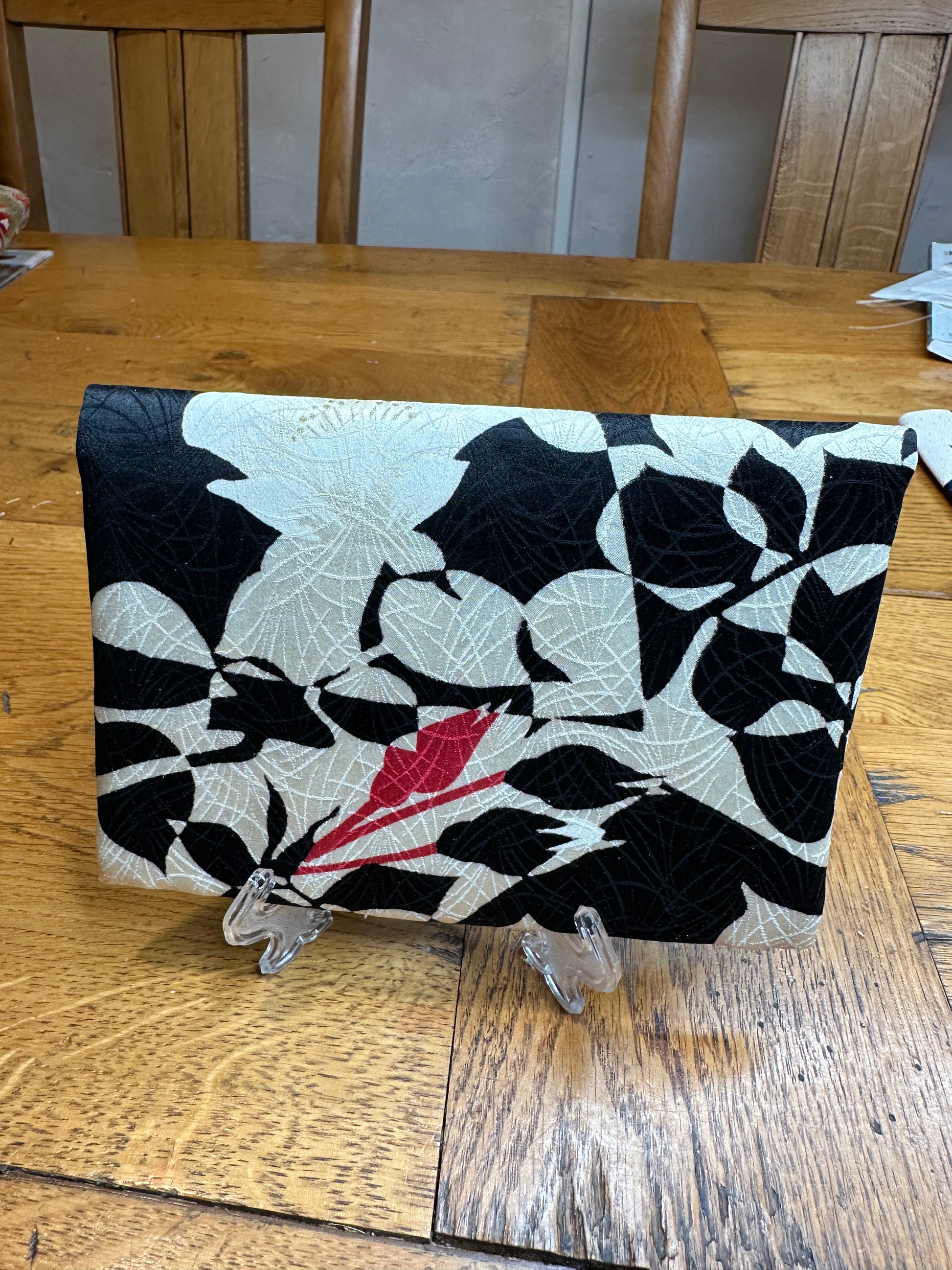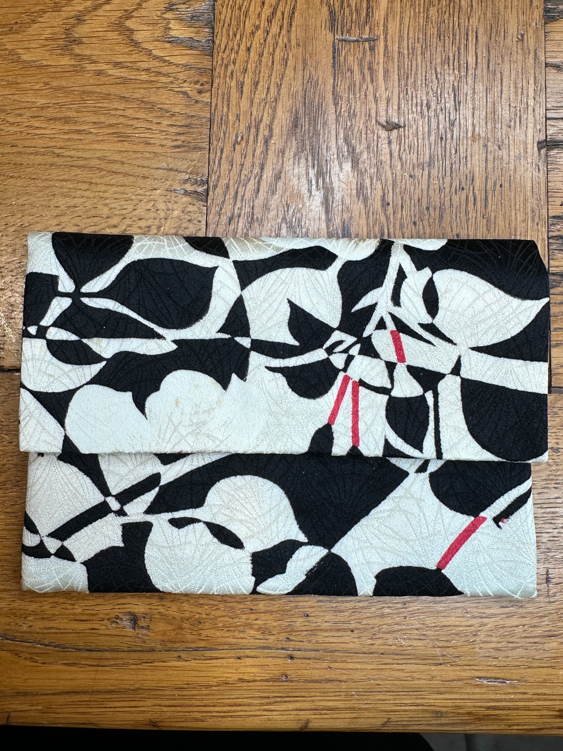 Manifique kimono japonais en soie transformé en pochette pour passeport ou carte vitale avec l’ordonnance etcétéra