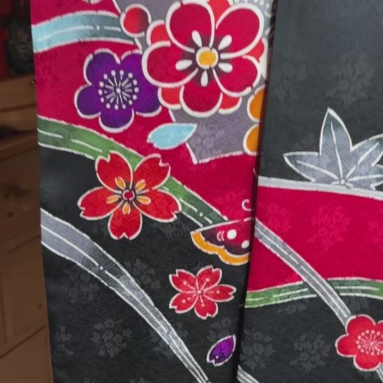 Manifique tissu pour furisode kimono japonais Neuf transformé en foulard
