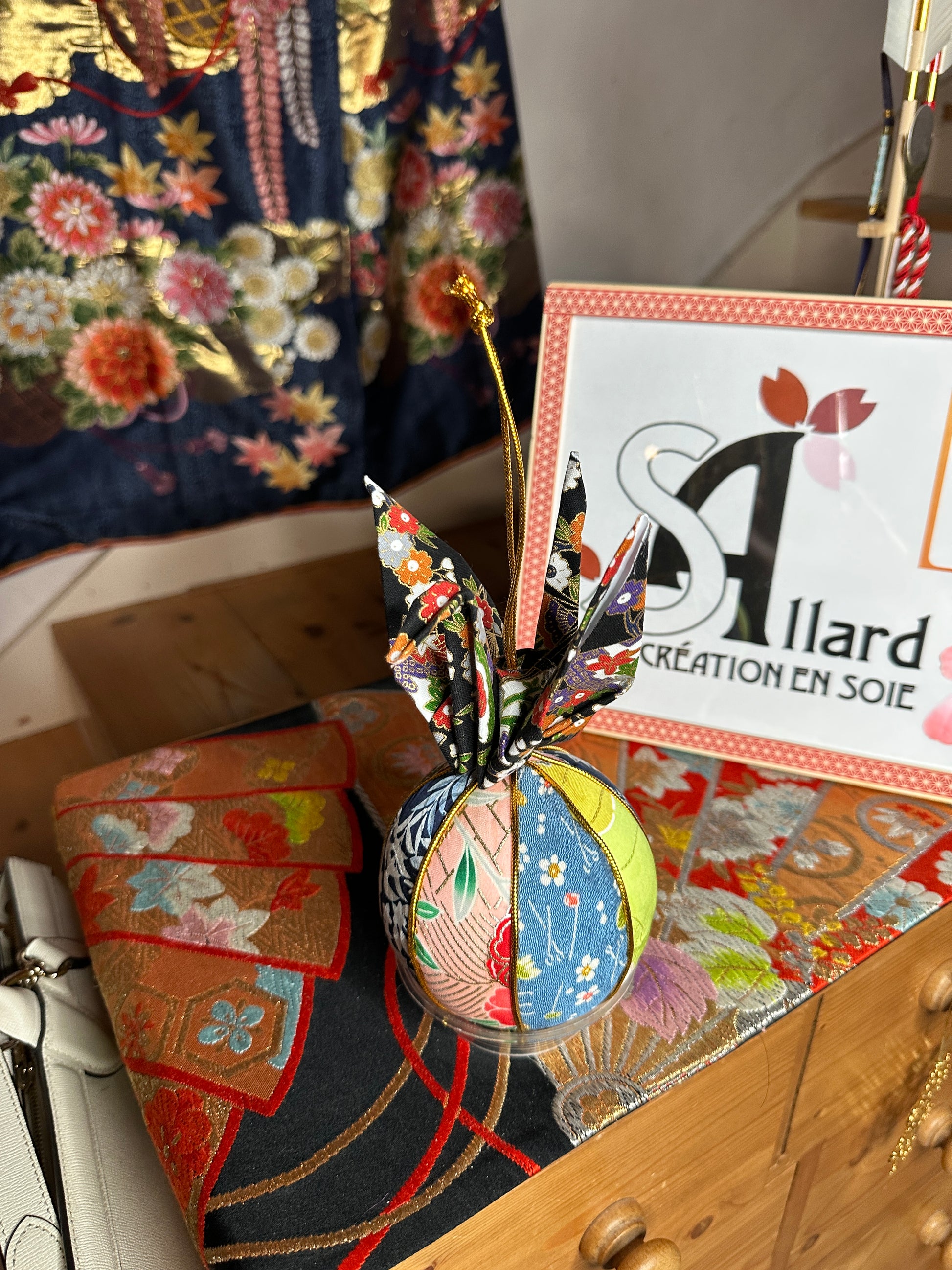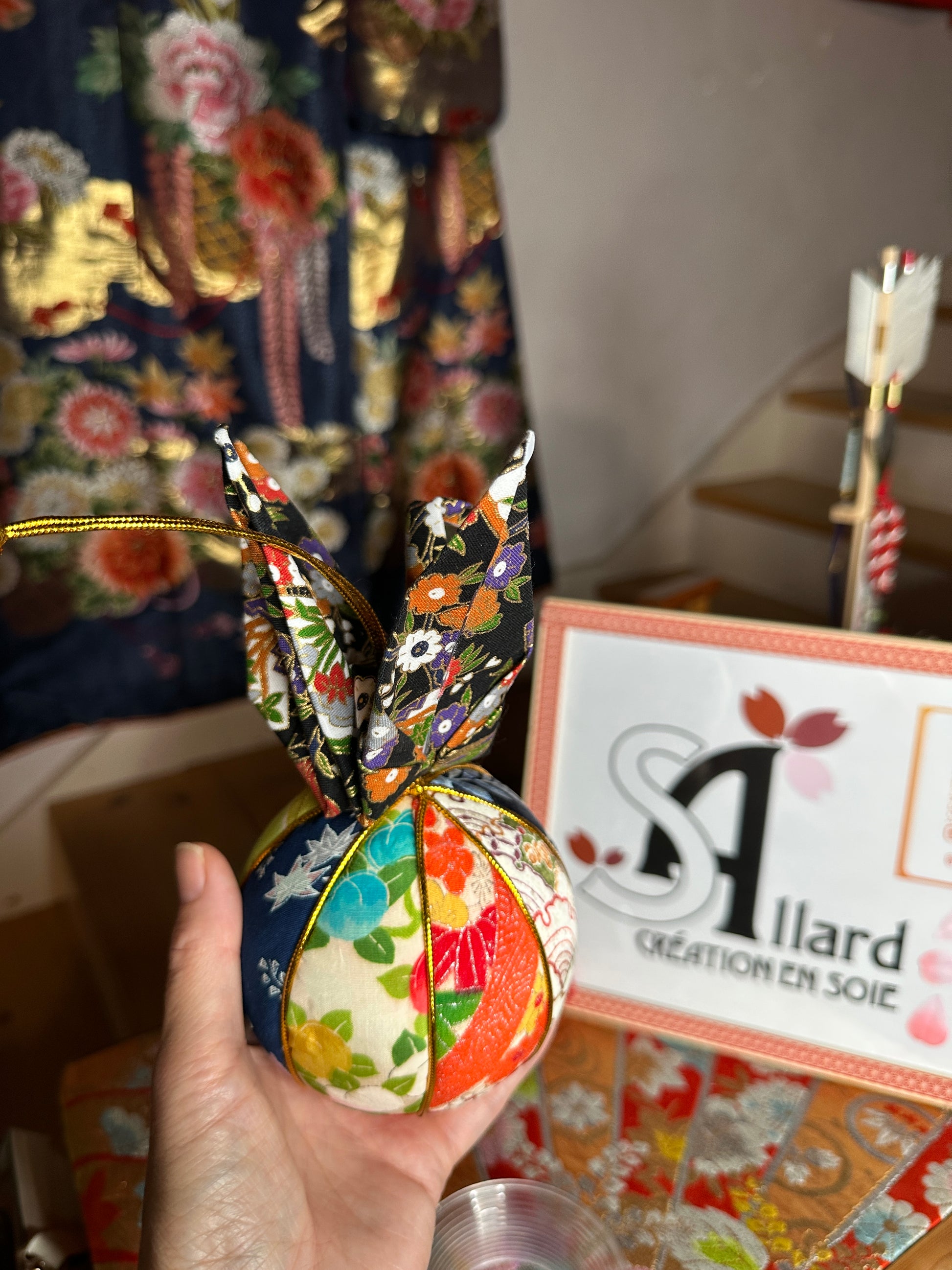Jolie tissu en soie pour kimono transformé en boule de Noël