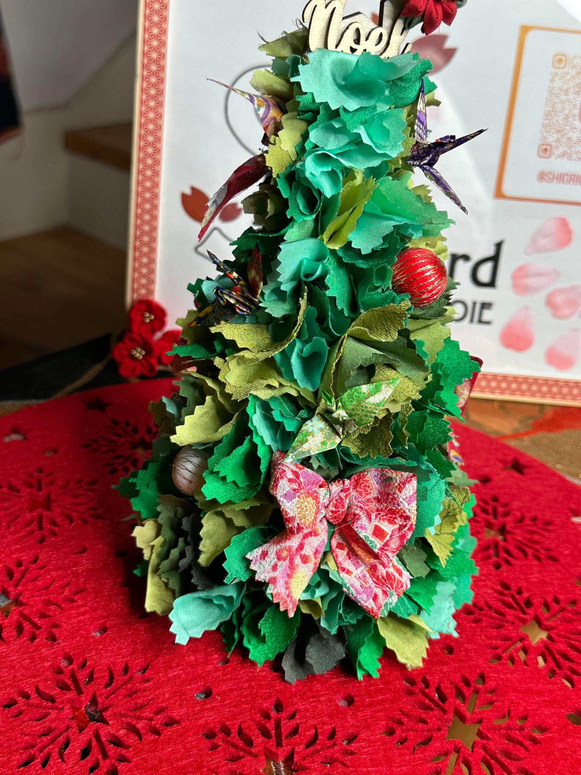 1 sapin de Noël en soie 13cm de diamètre x21 cm environ