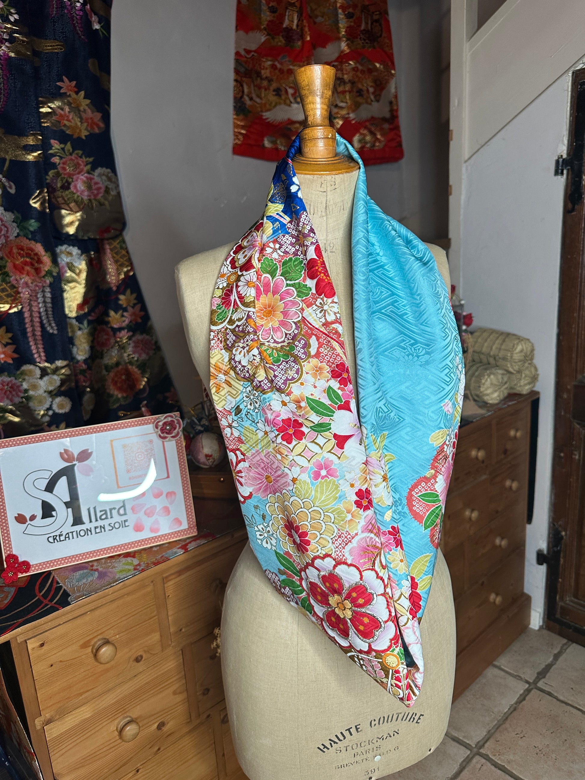 Tour de cou foulard furisode kimono japonais en soie